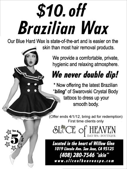 We offer painless Brazilian waxing for women.Take advantage of this $10 discount to try this extrememely popular body waxing. We use state-of-the-art hard wax, which is easier on the skin than ordinary soft strip wax. Women love Brazilian waxing because it makes them feel clean and smooth, not to mention how popular the look is with significant others. |